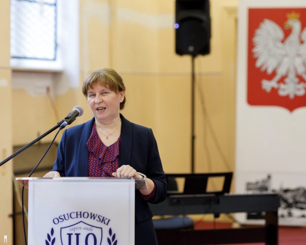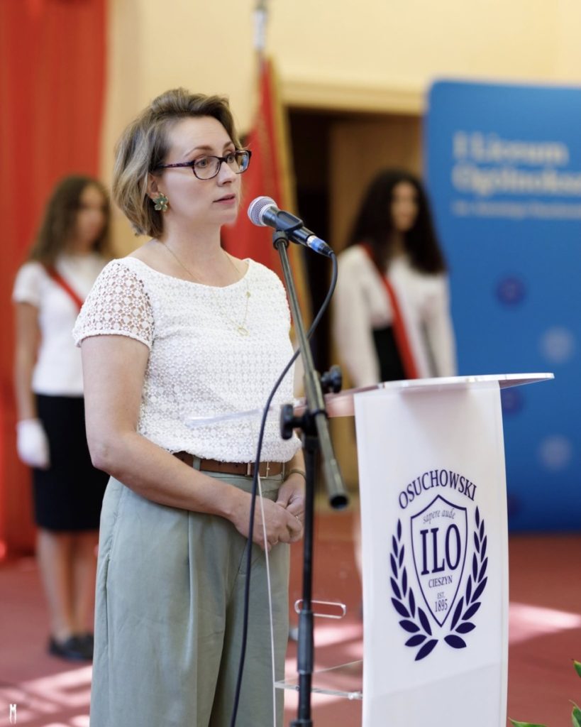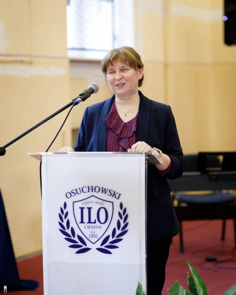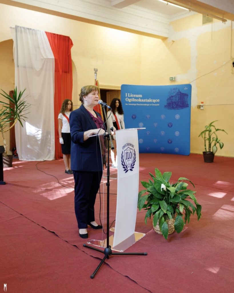 Podczas akademii wszystkich uczniów, nauczycieli oraz gości serdecznie powitała Pani Dyrektor Jolanta Dawidowicz – Macura, która w swoim wystąpieniu nawiązała do bogatej tradycji szkoły i znaczenia wspólnoty w dalszym rozwoju placówki.