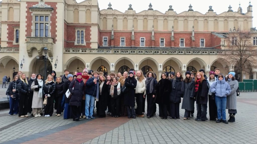 W ramach projektu „Wyjście z klasą” uczniowie klas maturalnych – 4beta i 4d – mogli na początku grudnia wziąć udział w  wyjeździe do Krakowa, którego celem był bezpośredni kontakt ze sztuką. Młodzież uczestniczyła w spektaklu pod tytułem „Szymborska. Kropki, przecinki, papierosy” oraz  w warsztatach w Muzeum Sztuki Współczesnej MOCAK. Pomiędzy inspirującymi światami słów i obrazów znalazł się również czas na chwilę wytchnienia w świątecznej atmosferze krakowskiego jarmarku.