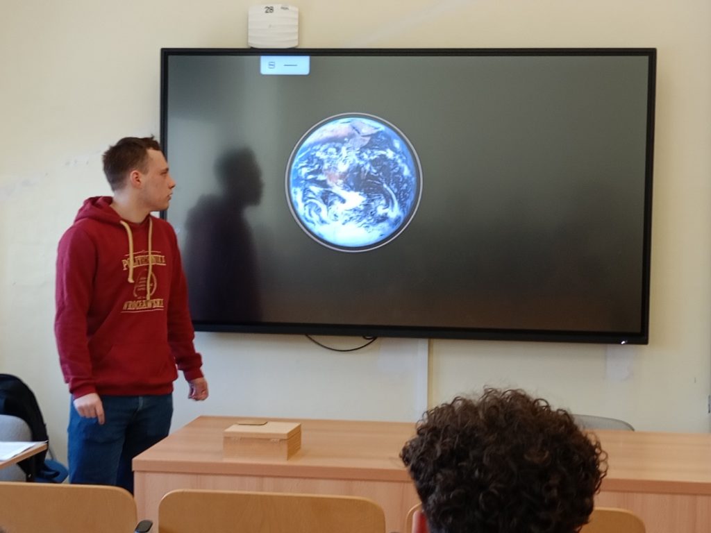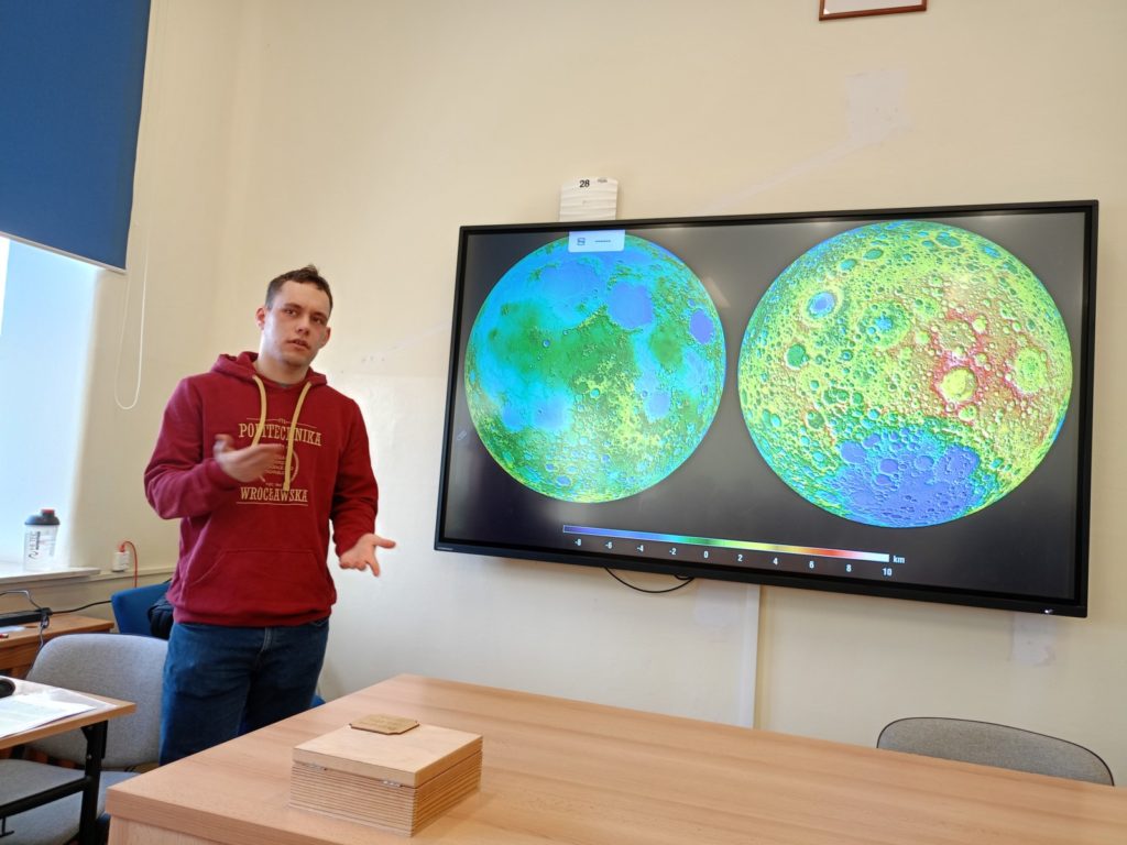Prelegent, w ramach międzynarodowego projektu Promise, zajmuje się badaniem statyczności jaskiń lawowych na Księżycu pod kątem kolonizacji. Była to wyjątkowa okazja dla uczniów, aby poznać praktyczne aspekty badań kosmicznych, jakie modele komputerowe stosuje się do oceny stabilności, statyczności i bezpieczeństwa stropów jaskiń lawinowych, dlaczego jaskinie lawowe są jednymi z najbardziej obiecujących miejsc do budowy pierwszych habitatów, dowiedzieć się, jak wyglądają prace inżynierów zajmujących się eksploracją Księżyca i zadać pytania.
